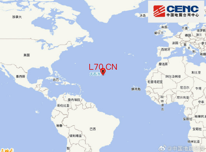 中大西洋海岭北部发生6.7级地震 震源深度10千米