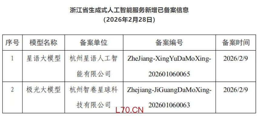 浙江新增2款已完成备案的生成式人工智能服务