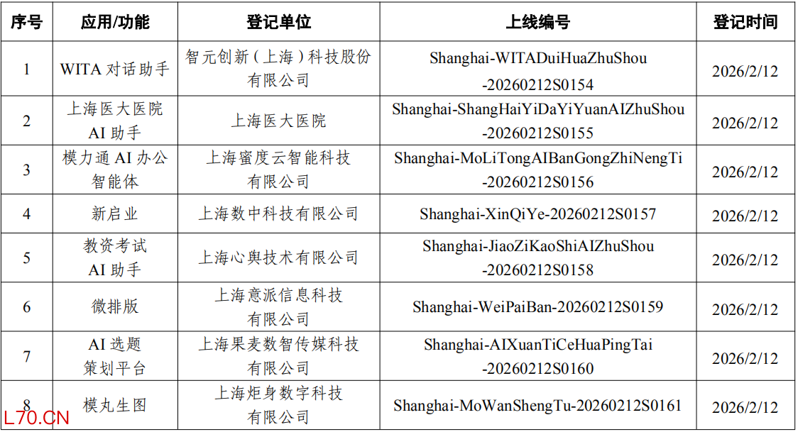 上海市新增8款已完成登记的生成式人工智能服务
