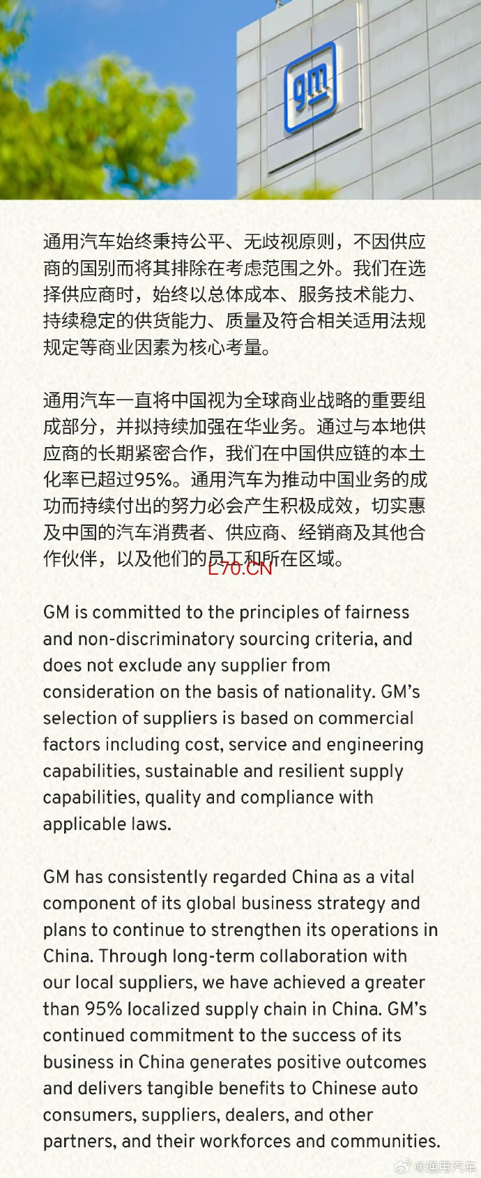 通用汽车:公司在中国供应链的本土化率已超过95%长期配资通用汽车:公司在中国供应链的本土化率已超过95%