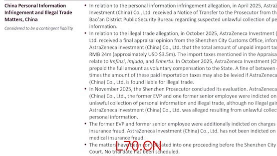 阿斯利康中国以及阿斯利康两位前高管,被深圳检方提起公诉