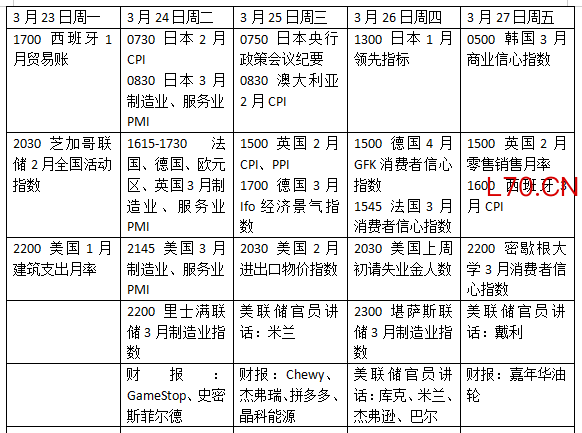 市场还密切关注周一公布的欧元区3月消费者信心初值、周三公布的德国3月IFO景气指数、周四公布的法国3月制造业信心指数,以及周五公布的西班牙3月通胀初值。
