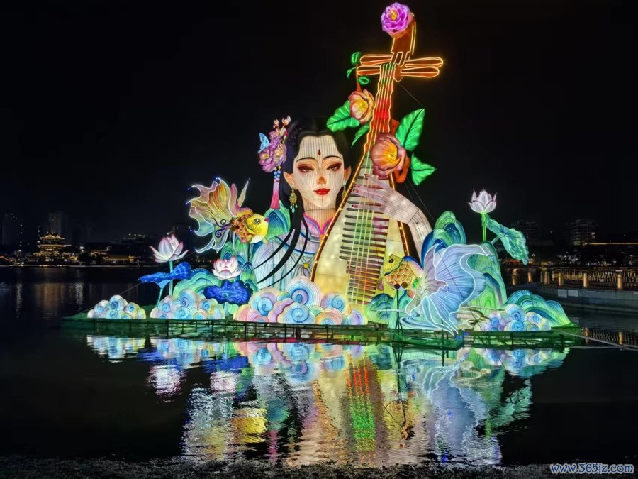 本届灯秀占地约7.2万平方米,巧妙利用东湖陆地与水域空间,由自贡顶尖团队匠心打造,核心亮点突出“文化深度”与“视觉震撼”的双重体验。长达42米、高12米的“平湖秋月”灯组如琵琶横卧湖面,亭台楼阁倒影随光影灵动变幻;高达12米的“琵琶仙女”灯组则活化国家级非遗“平湖派琵琶”,实现眨眼、弹奏动作与内置琴音联动,尽显江南风情。此外,“红楼出海”灯组以长22米的宏大叙事再现平湖作为《红楼梦》文化出海起点的历史场景,“当湖十局”灯组还原清代围棋国手的巅峰对决,游客可亲身上前落座互动,感受棋局千钧。