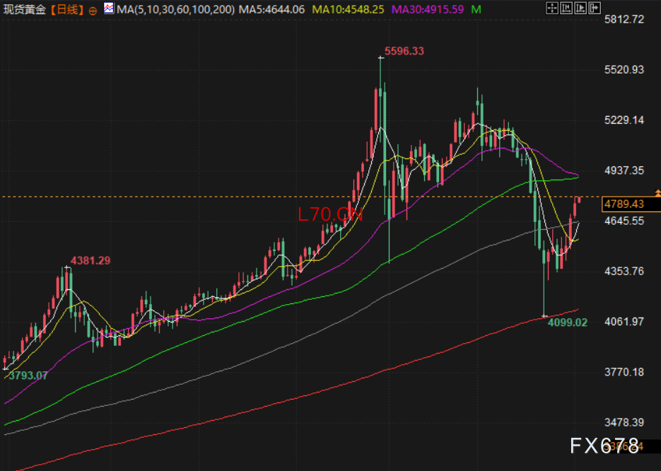 金价周三连续第四个交易日上涨,现货黄金收涨2.5%报每盎司4784.22美元,美国期金收涨2.9%报4813.10美元,主要受美元连续第二个交易日走软提振,这使得以美元计价的黄金对持有其他货币的投资者更具吸引力。