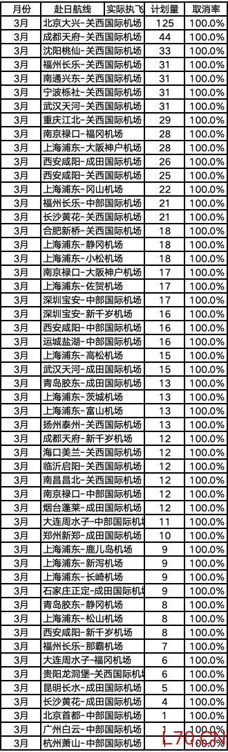 53条中日航线3月取消全部航班